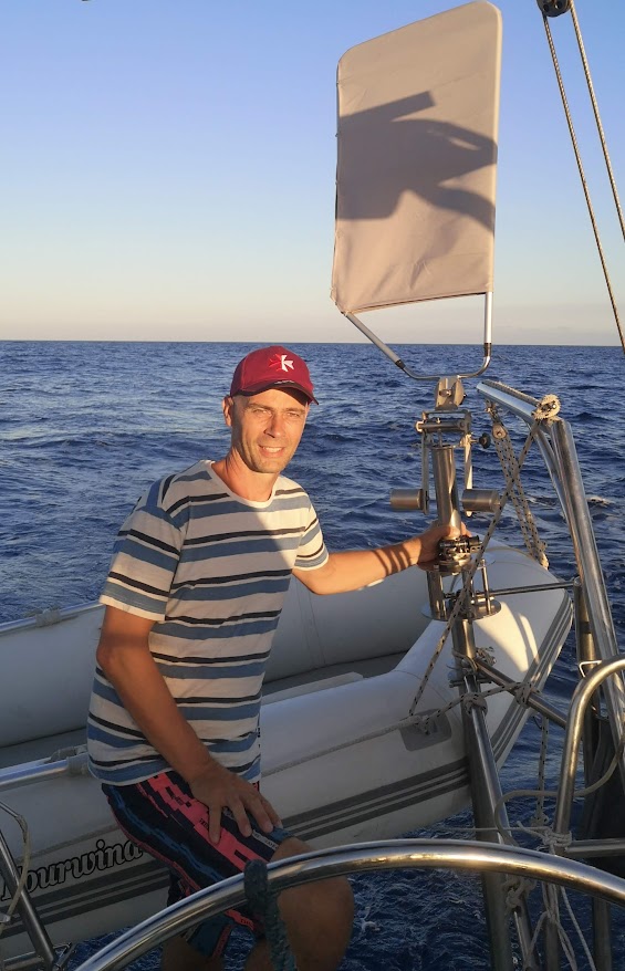 On the last leg from South Africa to Cabo Verde, flight home being less than 4000 nm away, the old noname self steering gear broke down when a bigger breaker hit the yacht from the side.