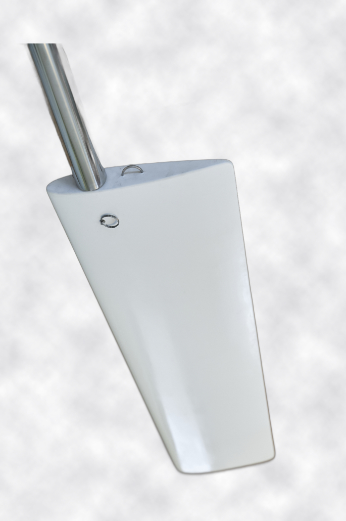 The wind vane itself does not possess sufficient power to steer the boat, this is augmented by the servo pendulum. The energy required for this is generated by the forward motion of the boat, through the flow of the water along the submerged portion of the servo pendulum. Connection between the wind vane and the servo pendulum is with the 1,5 mm stainless steel cable and bevel gears.